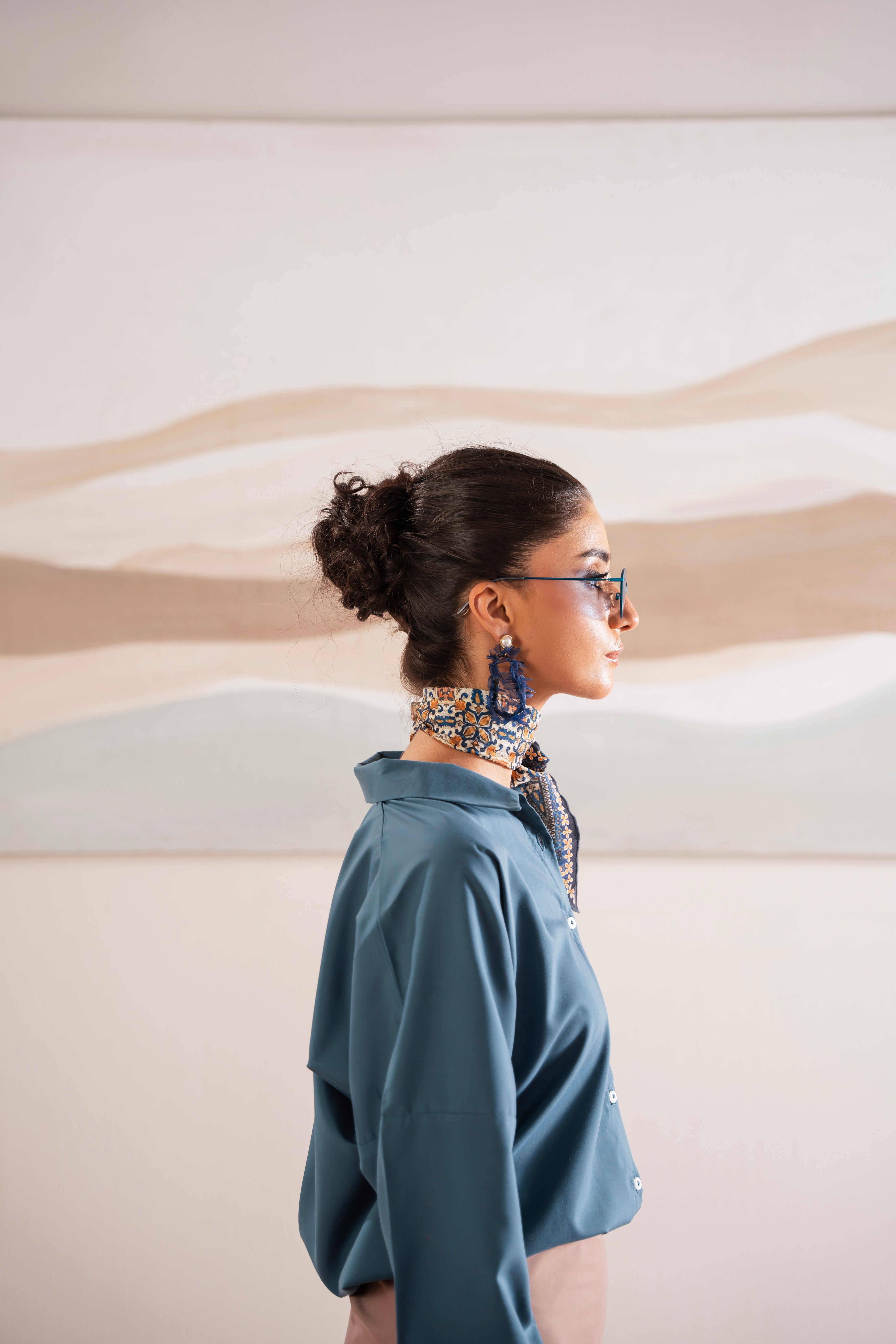 This two-piece dress includes a stylish frock and tailored trouser. This dress is crafted from our new soft crepe fabric, known for its sweat-absorbing properties, ensuring comfort throughout the day. Designed to blend contemporary Western styles with subtle traditional touches. The dress is shown here in size small, perfectly fitted on the model. Length of Shirt, Sleeve Opening & Shirttail are as per Design. Actual color may vary slightly from what appears on your screen due to lighting.