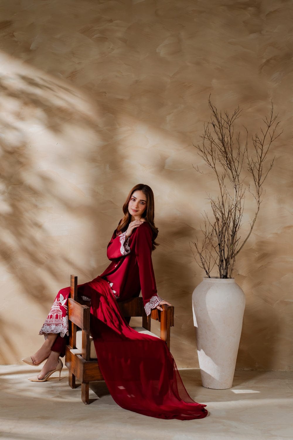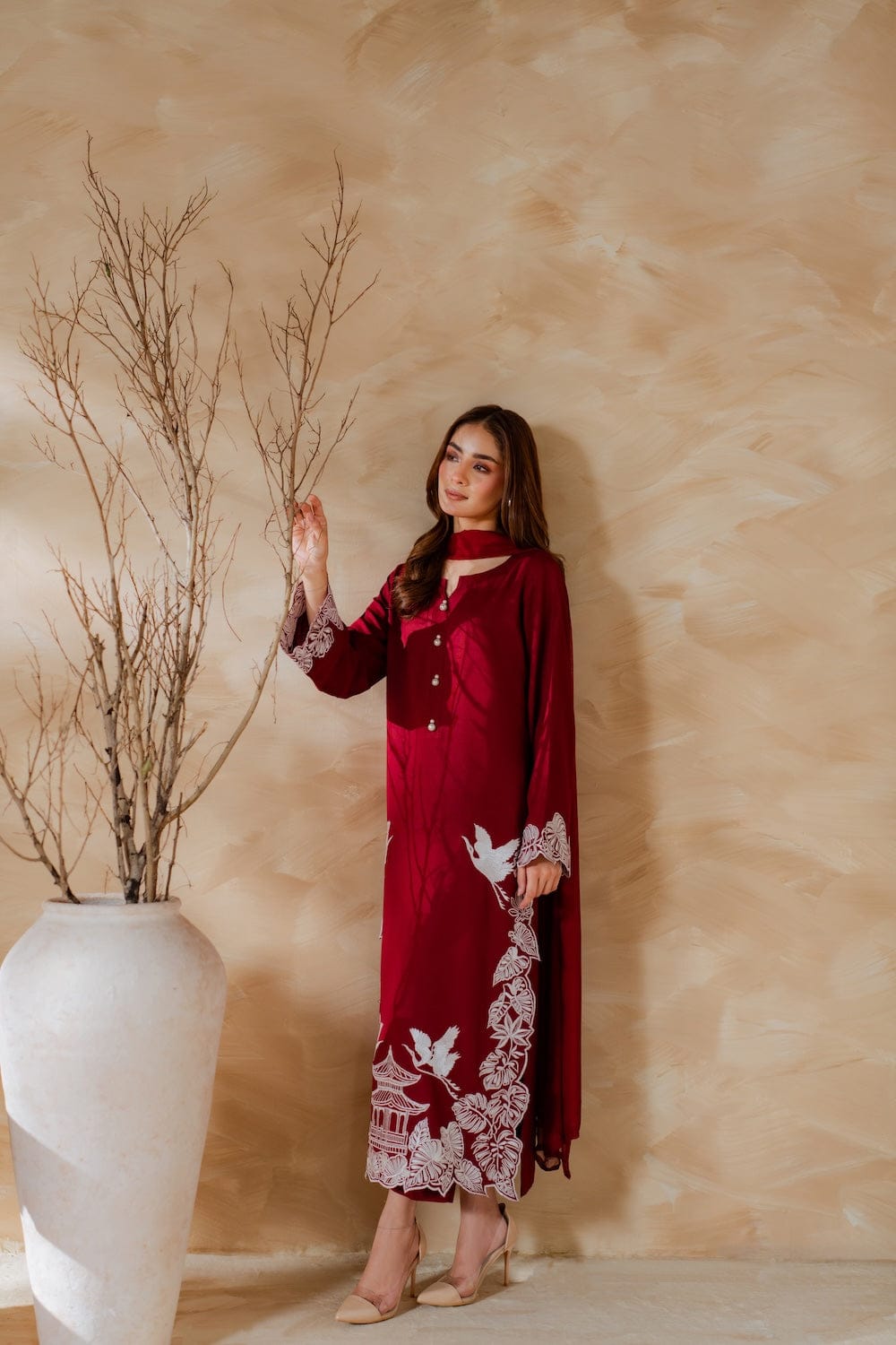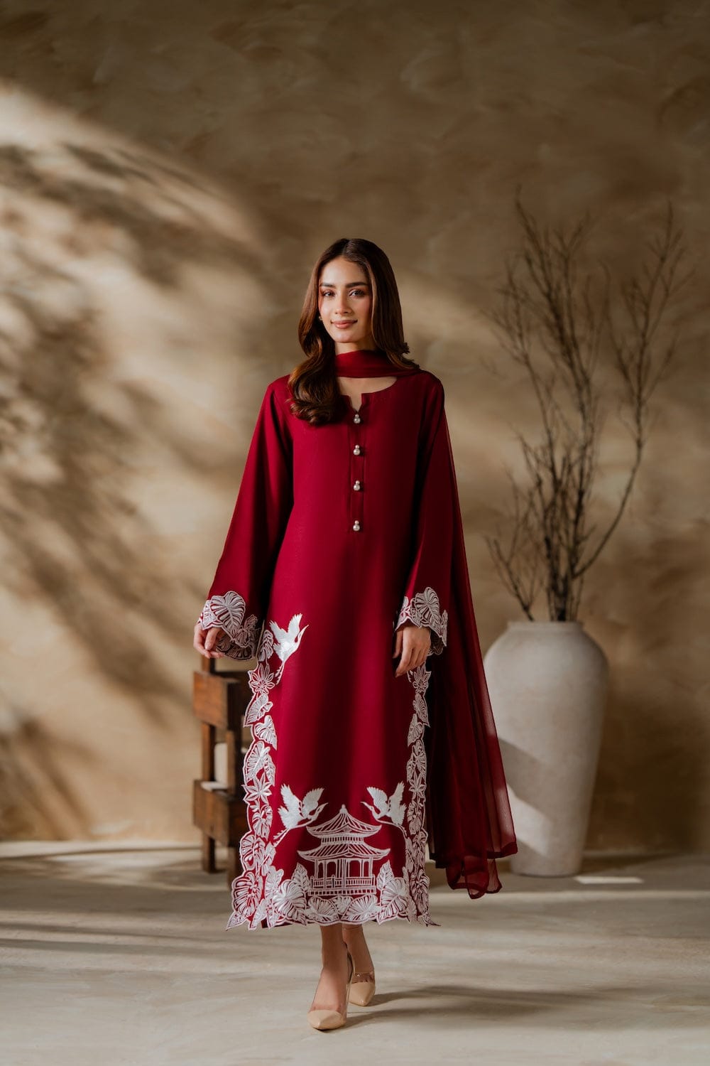✔ Design: A 3-piece set (Dupta + kurta + trousers/shalwar) with a tailored fit and contemporary silhouette.