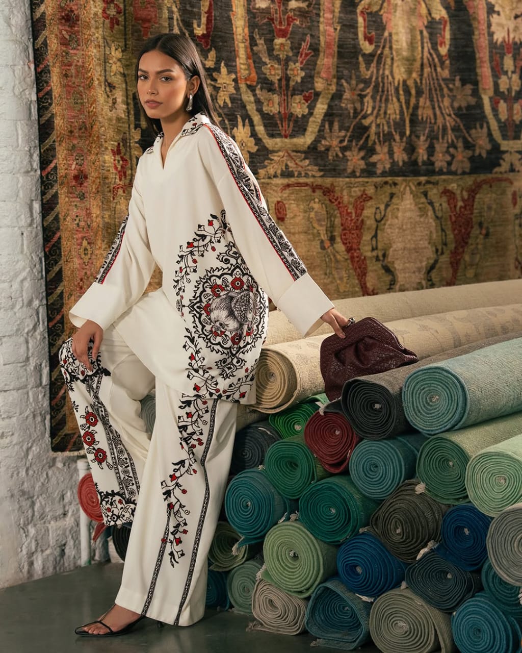✔ Design: A 2-piece set (kurta + straight-trousers/shalwar) with a modern, relaxed fit.