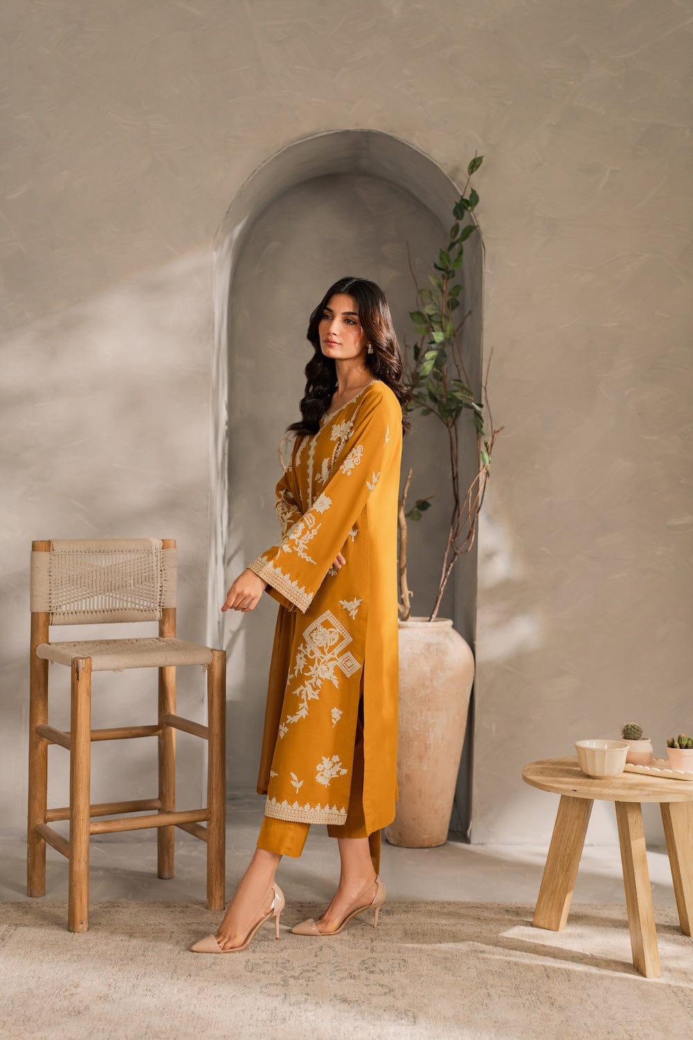 ✔ Design: A 3-piece set (Dupta + kurta + trousers/shalwar) with a tailored fit and contemporary silhouette.